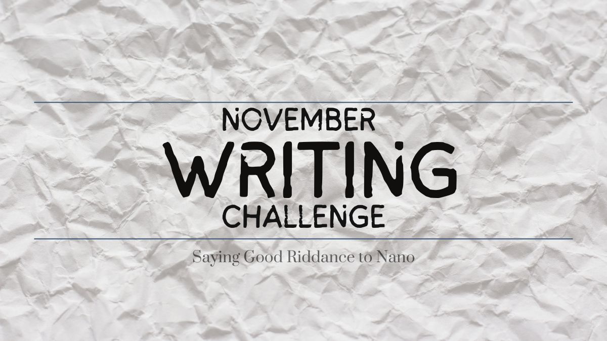 Social media’s full of too many challenges, but one I liked to take part in was called National Novel Writing Month, but… not anymore. I usually don’t sign up with the actual organization every November and just follow the terms of the challenge on my own just to push myself to write more. For reasons I’m not going into, writers are abandoning the National Novel Writing Month organization en masse. If you want to know why, I’ll let you do your own research.